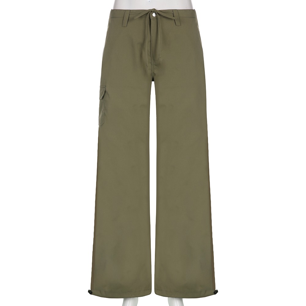 Weekeep Green Wide Leg Pants Low Rise Loose Solid Cargo Pants Women Casual Vintage Sweatpants Y2k Grunge Streetwear Capris Lady